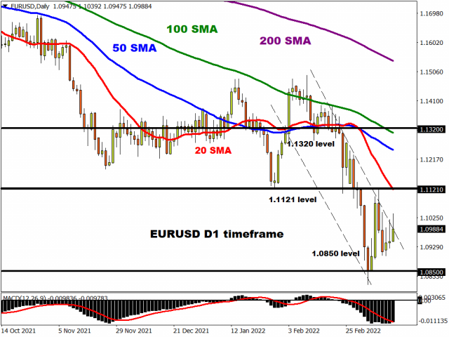 Stocks rallied, the dollar softened and oil prices weakened on the prospects of peace talks between Russia and Ukraine. There was plenty of action in the FX space as major currency pairs reacted to a weakening dollar, while gold and other safe-haven assets struggled to shine amid the improving market mood. Later this evening, the Federal Reserve is widely expected to raise interest rates for the first time since 2018 which could lend some support to the greenback.