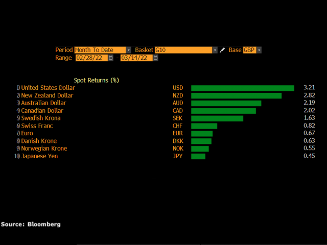 March has not been a kind month for the pound, which is down against all its major counterparts as of writing.