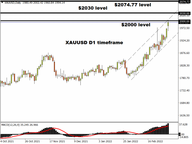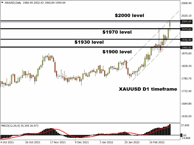 The precious metal kicked off the new week on a solid note, smashing into $2000 after the United States said it may ban Russian oil imports with its European allies over the weekend. Prices peaked just above $2002 before later sinking as low as $1960.84 only for bulls to later re-enter the scene. Given how the latest developments could fuel fears around rising inflation and slowing economic growth, gold certainly has the potential to shine through the chaos.