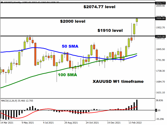 Looking at things from the weekly timeframe, the trend remains heavily bullish with the all-time high of $2074.77 acting as the first key point of interest. Beyond this level, it is uncharted territory.