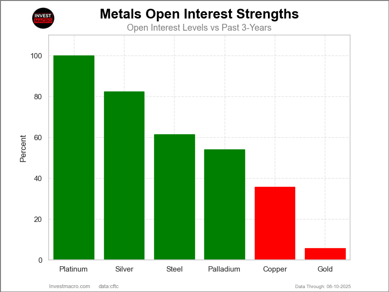 Gold (51 percent) comes in at the lowest strength level currently but is above the 3-Year midpoint of 50 percent.