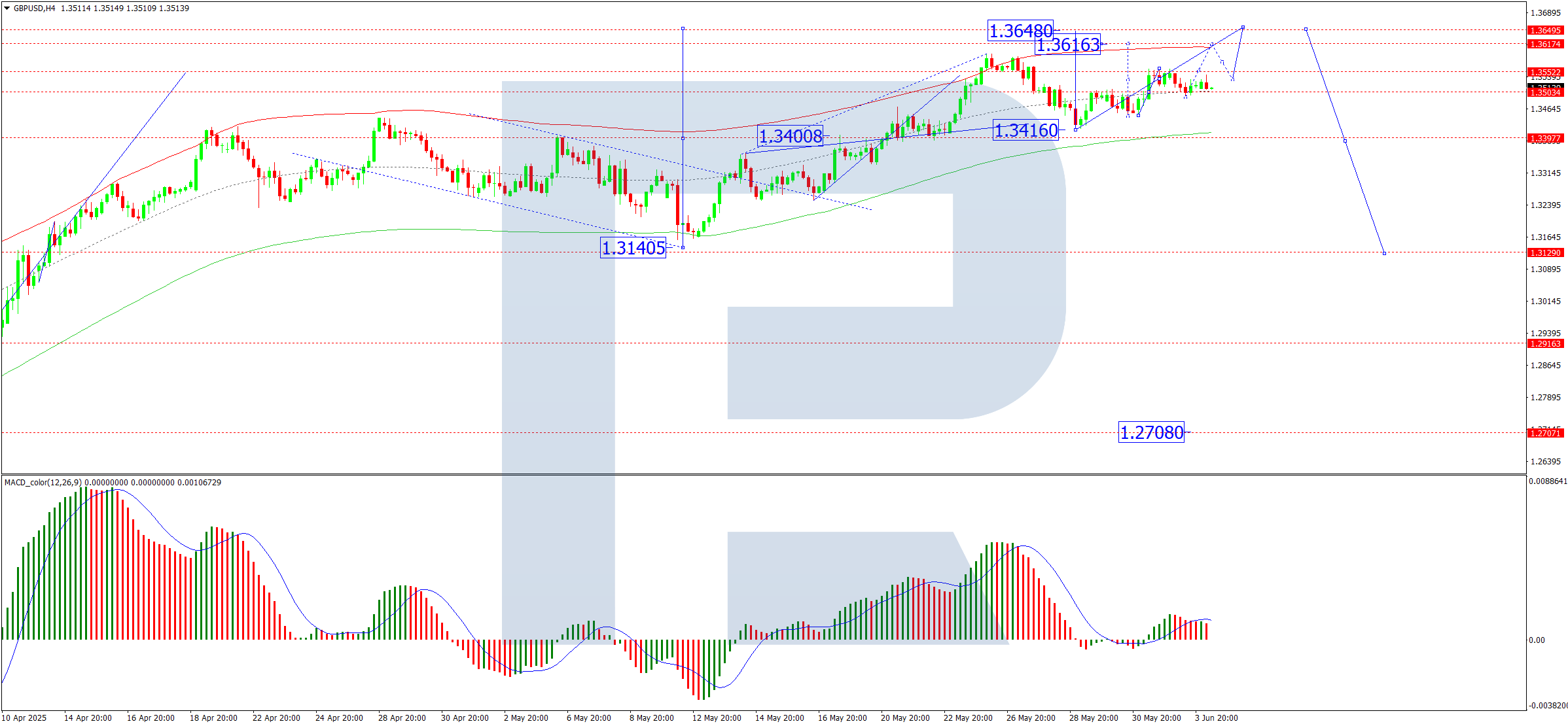The GBP/USD pair remains steady around 1.3515, maintaining its strength after reaching a three-year high on 26 May. The British pound has shown greater stability than other major currencies amid rising geopolitical and economic pressures.