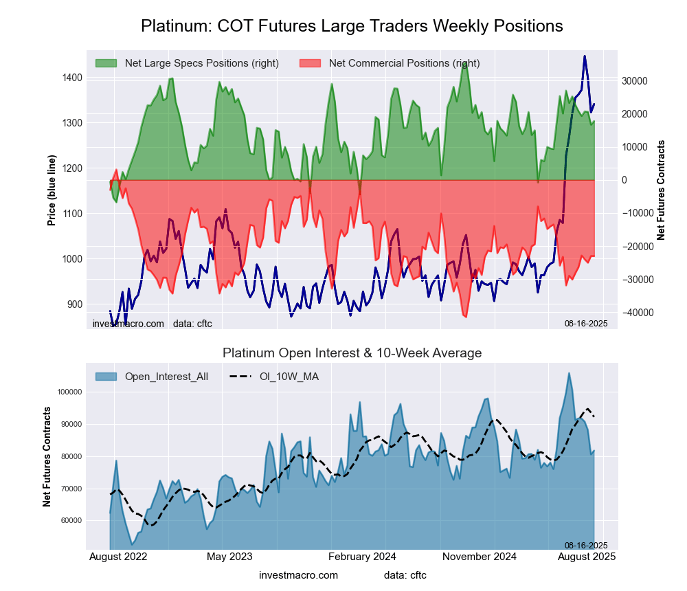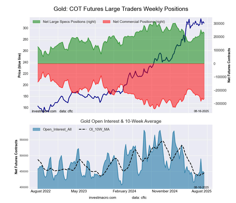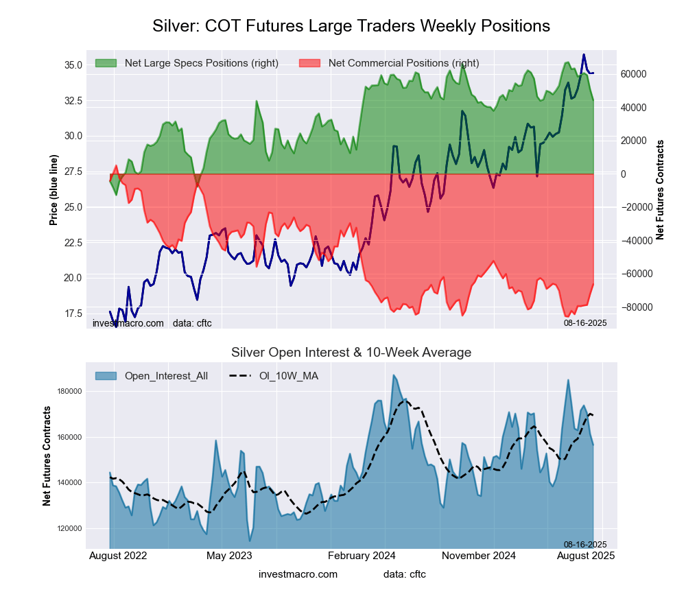 The latest COT data is updated through Tuesday August 12th and shows a quick view of how large traders (for-profit speculators and commercial entities) were positioned in the futures markets.