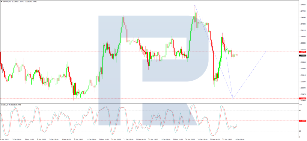 On the H1 chart, the market is forming a downward impulse targeting 1.3290 as its initial objective. Following this, a correction towards 1.3370 is likely. Upon completion of this corrective phase, the focus will shift to the potential continuation of the downtrend.