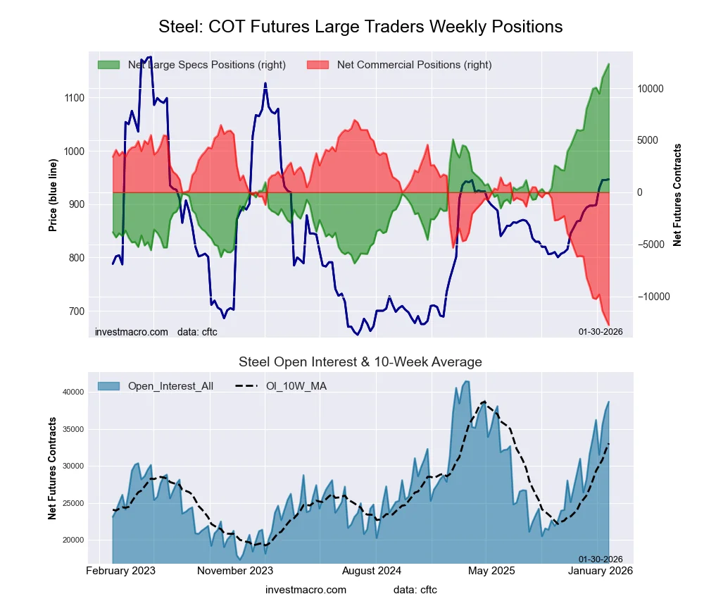 The Steel Futures large speculator standing this week resulted in a net position of 12,340 contracts in the data reported through Tuesday. This was a weekly rise of 669 contracts from the previous week which had a total of 11,671 net contracts.