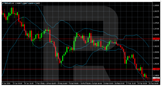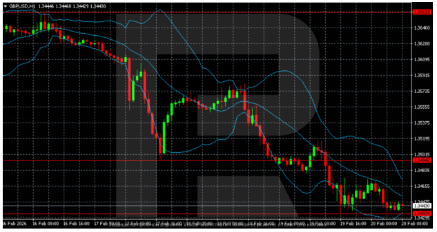 The H1 time frame shows a sharp sell-off on 19 February, followed by narrow consolidation at the lows. The Bollinger Bands have begun to narrow, suggesting volatility is easing after the recent sharp move.