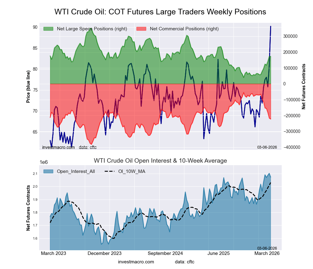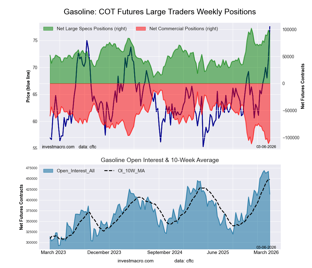 The latest COT data is updated through Tuesday March 3rd and shows a quick view of how large traders (for-profit speculators and commercial entities) were positioned in the futures markets.