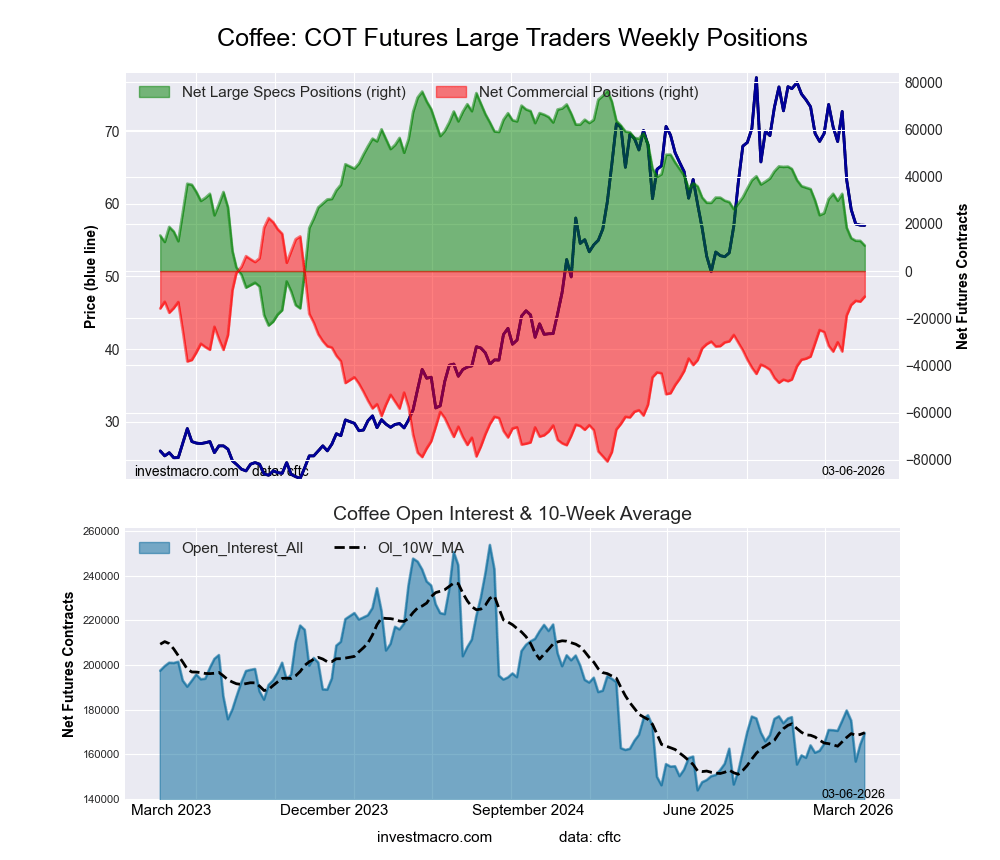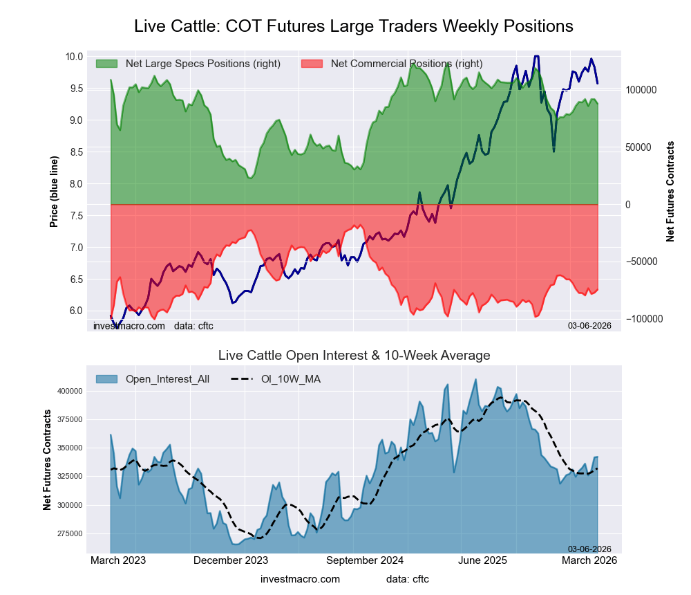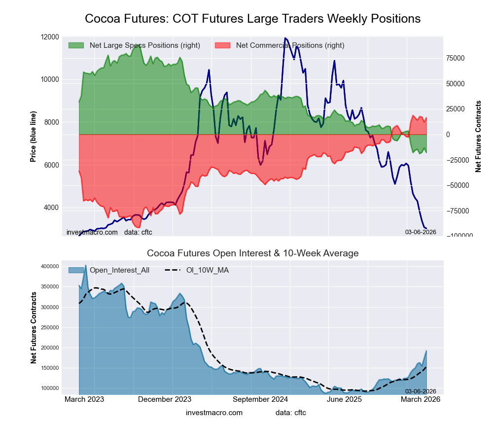 The markets with the declines in speculator bets this week were Wheat (-9,920 contracts), Cocoa (-4,550 contracts), Live Cattle (-3,896 contracts) and with Coffee (-2,014 contracts) also registering lower bets on the week.