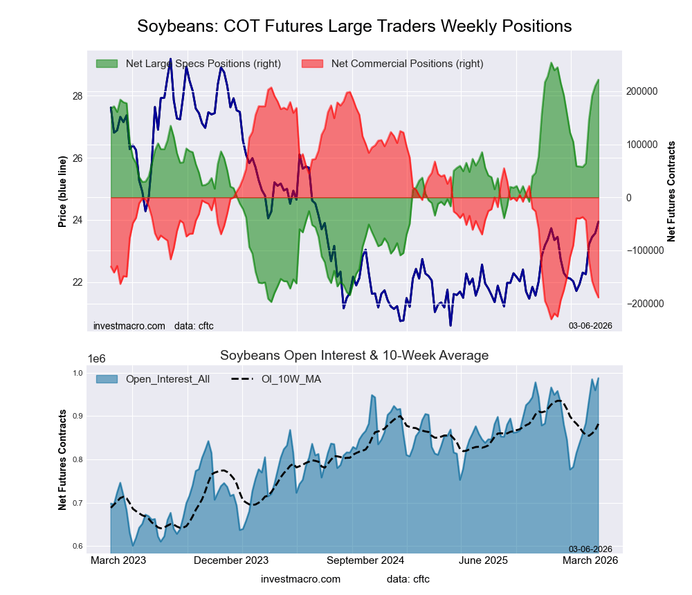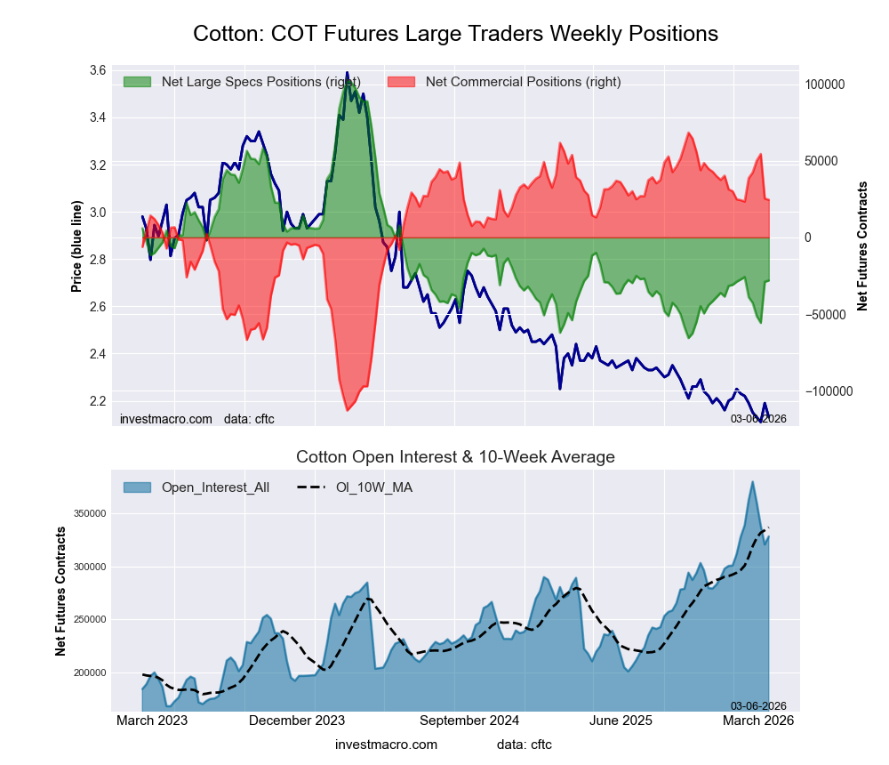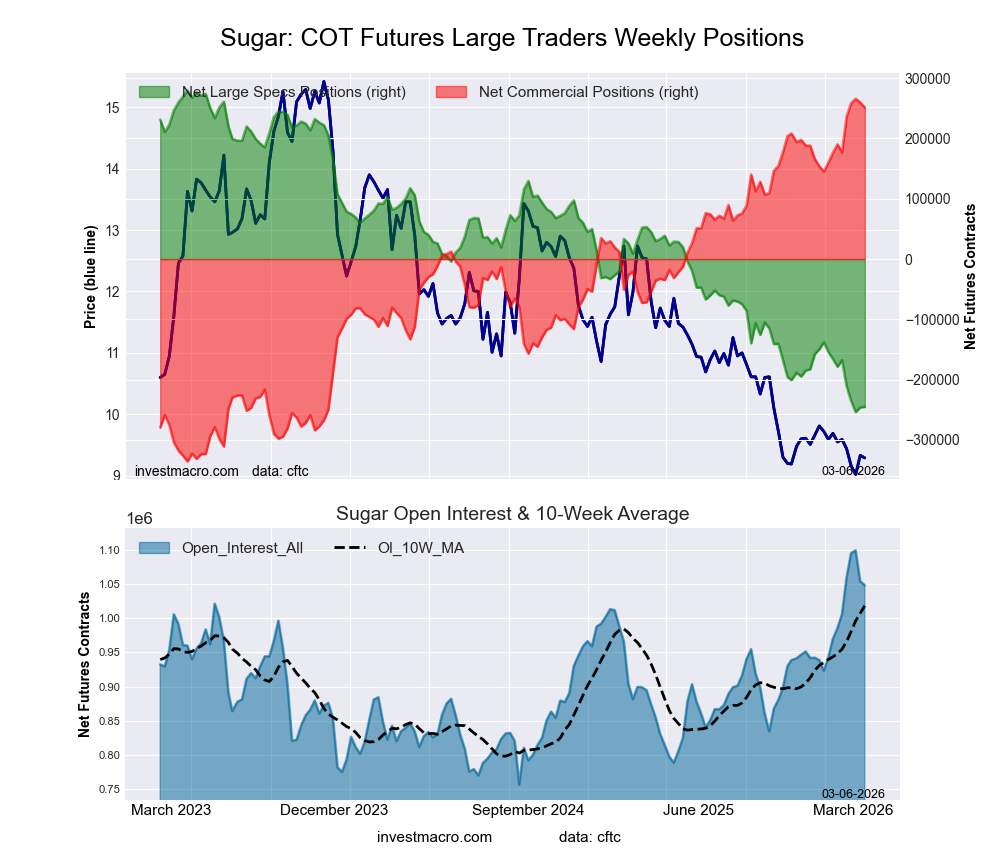 The latest COT data is updated through Tuesday March 3rd and shows a quick view of how large traders (for-profit speculators and commercial entities) were positioned in the futures markets.