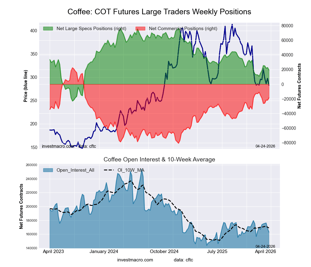 - COFFEE large speculator standing this week was a net position of 19,287 contracts in the data reported through Tuesday.