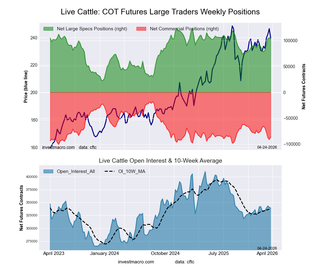 - LIVE CATTLE large speculator standing this week was a net position of 102,473 contracts in the data reported through Tuesday.