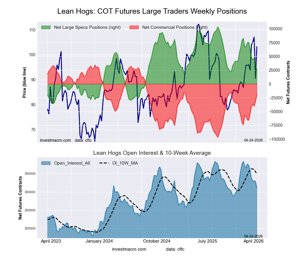 - LEAN HOGS large speculator standing this week was a net position of 24,221 contracts in the data reported through Tuesday.