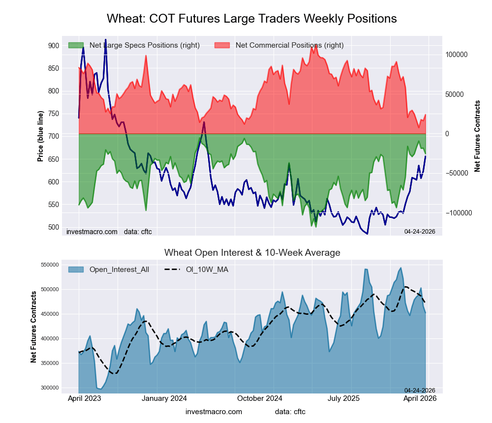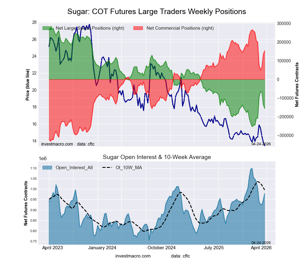The latest COT data is updated through Tuesday April 21st and shows a quick view of how large traders (for-profit speculators and commercial entities) were positioned in the futures markets.