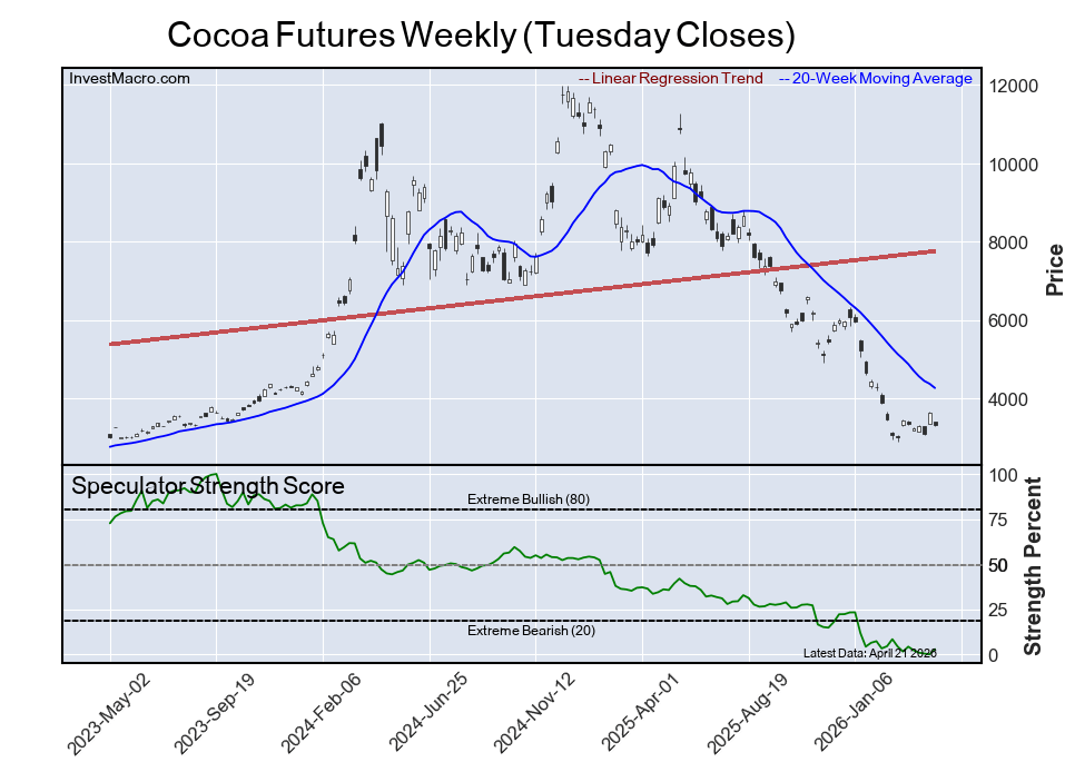 The Cocoa Futures speculator position comes in next for the most bearish extreme standing on the week as the Cocoa speculator level is at a 3 percent score of its 3-year range.