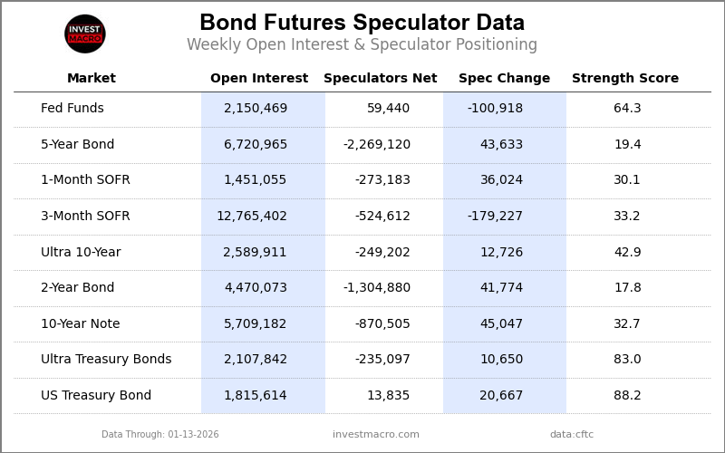 Weekly Speculator Changes led by SOFR 1-Month & 5-Year Bonds