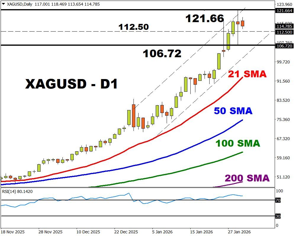 Silver prices (XAG) fell sharply, dropping to $64.1 per ounce on Friday before recovering to levels above $70 per ounce, highlighting a surge in precious metals volatility. The decline occurred amid a broad reduction in risk appetite and the deleveraging of positions, which caused silver to look weaker than other safe-haven assets. Pressure was compounded by signals of a cooling US labor market, including rising unemployment claims and significant corporate layoffs, which bolstered expectations for a Fed policy easing toward the end of the year. However, the initial investor reaction was risk-off, triggering margin selling following last week’s sharp rise. Additional uncertainty stems from the discussion of Kevin Warsh’s candidacy for Fed Chair, while easing geopolitical tensions surrounding Iran temporarily reduced safe-haven demand.