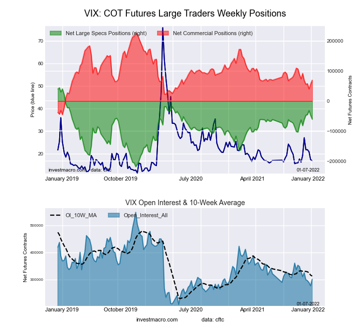 The latest COT data is updated through Tuesday January 11th 2022 and shows a quick view of how large traders (for-profit speculators and commercial entities) were positioned in the futures markets.