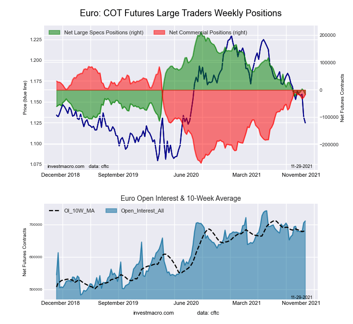 The latest COT data is updated through Tuesday January 11th 2022 and shows a quick view of how large traders (for-profit speculators and commercial entities) were positioned in the futures markets. All currency positions are in direct relation to the US dollar where, for example, a bet for the euro is a bet that the euro will rise versus the dollar while a bet against the euro will be a bet that the euro will decline versus the dollar.