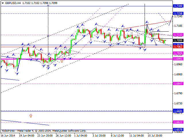 Pound is falling down a little bit. We think, today price may reach level of 1.7075 and then continue moving upwards inside ascending trend towards level of 1.7500.