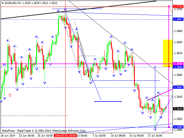 Forex Technical Analysis 22.07.2014 (EUR/USD, GBP/USD, USD/CHF, USD/JPY, AUD/USD, USD/RUB, GOLD)