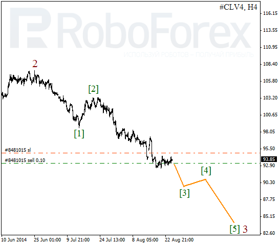 In case of Oil, bears decided to take a break, which can be seen at the chart in the form of a long flat pattern. Later the market is expected to continue falling inside wave [3] and form another bearish impulse, during which the price may reach several new lows.