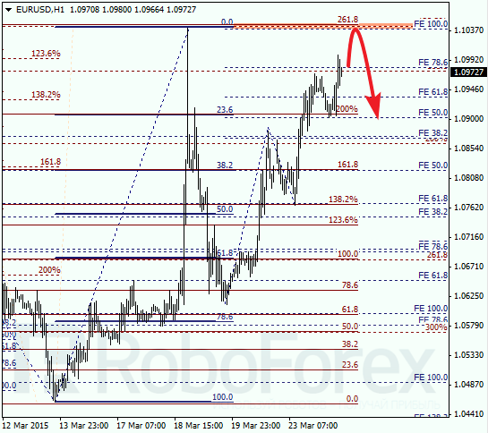 As we can see at the H1 chart, the upper predicted target area is confirmed by local retracement, which make this area even more important. Most likely, the price will reach this are in the nearest future. The current ascending movement may be considered as a correctional one, that’s why I’m staying out of the market.