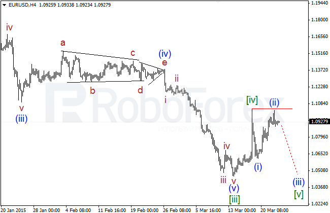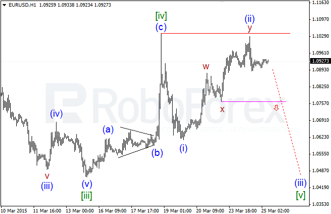 The correction inside wave (ii) of [v] has turned out to be a bit more complicated and taken the form of double zigzag. Most likely, in the nearest future, the price will continue moving inside the previous downtrend.