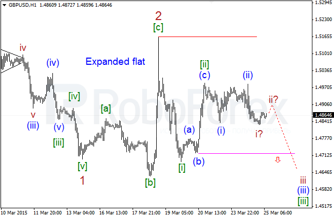 Pound continues moving inside an almost horizontal trading range. Most likely, in the nearest future, the market will continue falling inside wave [iii] of 3.