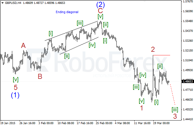 Euro has reached another local high and is still being corrected inside wave (ii) of [v]. The pair is moving below its critical level and in the nearest future may start falling inside wave (iii) of [v].
