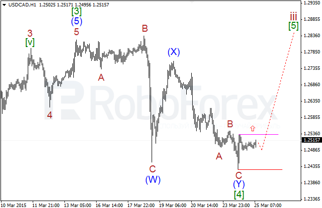 The structure of wave [4] of iii has become more complicated and taken the form of double three. Most likely, in the nearest future, the market will continue growing inside wave [5] of iii.