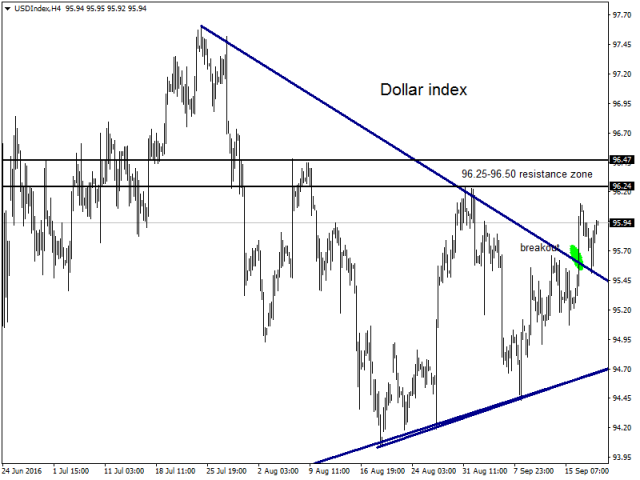 The Greenback hover around 96.00 psychological barrier after prices jumped by the end of last week. Prices succeeded to break above 95.45 short-term resistance, which cleared the path for a re-test of 96.00 psychological barrier followed by 96.25 in extension. In the meantime, the Dollar index broke above the bearish trend line that comes from 97.60 peak reinforcing the bullish outlook in the near-term. As of now, it is clear that market participants are pricing on a rate hike in the coming months, meanwhile, any dovish comments from FED officials can trigger a big sell-off in USD, especially if a clear message that rates may not move until next year is stated.
