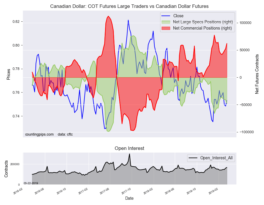 Canadian dollar speculators recorded a net position of -47,774 contracts this week. This was a reduction of -6,721 contracts from the previous week which had a total of -41,053 net contracts.