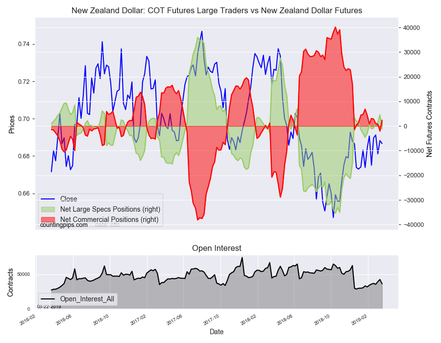 The New Zealand dollar speculative standing came in at a net position of -1,124 contracts this week in the latest COT data. This was a weekly decline of -5,721 contracts from the previous week which had a total of 4,597 net contracts.