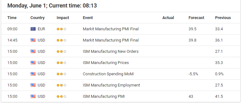 – ISM manufacturing PMI at 17:00 (GMT+3:00).