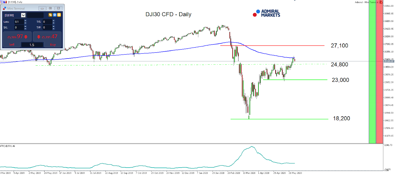 Source: Admiral Markets MT5 with MT5-SE Add-on DAX30 CFD Daily chart (between March 18, 2019, to May 29, 2020). Accessed: May 29, 2020, at 10:00pm GMT – Please note: Past performance is not a reliable indicator of future results, or future performance.