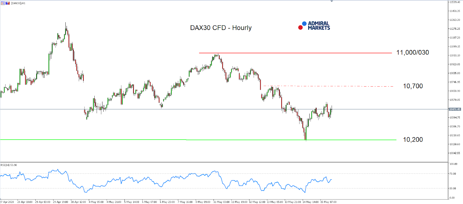 Source: Admiral Markets MT5 with MT5-SE Add-on DAX30 CFD Hourly chart (between April 27, 2019, to May 15, 2020). Accessed: May 15, 2020, at 10:00pm GMT
