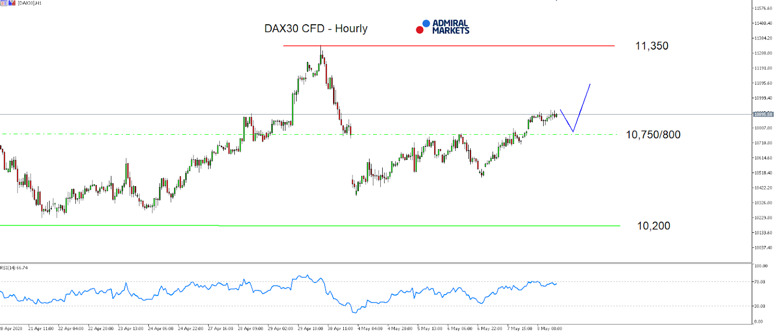 Source: Admiral Markets MT5 with MT5-SE Add-on DAX30 CFD Hourly chart (between April 20, 2020, to May 8, 2020). Accessed: May 8, 2020, at 10:00pm GMT